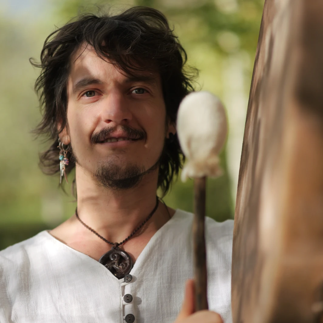 Initié à la fois au chamanisme celte et aux traditions spirituelles orientales, j'enseigne un chamanisme non-duel porté sur la reconnaissance de l'essence divine en chacun de nous. Je propose des stages de fabrication de tambours médecine, des cérémonies de cacao et des soins chamaniques. Dans chaque enseignement, une grande importance est donné à la méditation et à la connexion au cœur.